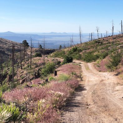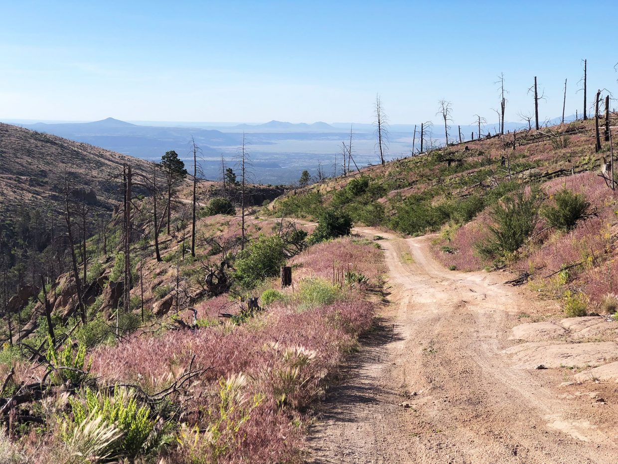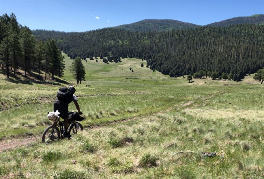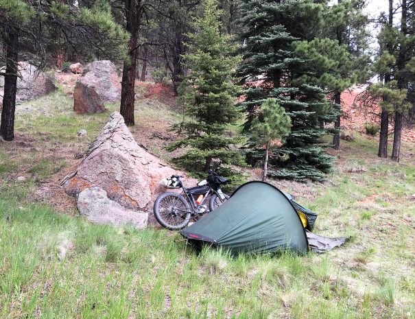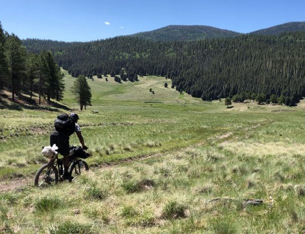 I was frantically paranoid of the noises outside my tent that kept me going in and out of R.E.M. sleep all night. I got everything packed to start at 6 am and I rode to the top of the hill to catch the sunrise over the ridge off in the distance. I paused for its breathless view and the pink, orange hues of the serene New Mexico dirt trail. I was excited to take on the day. It was a climb after climb into new scenic ecosystems that New Mexico offers. Rugged mountain passes that climbed 8000 feet, petrified forest burned down to the soil with trees layered down like a box of pencil across the table. The lush green forest hid me from the sun and gave me a cool fan like a breeze.
