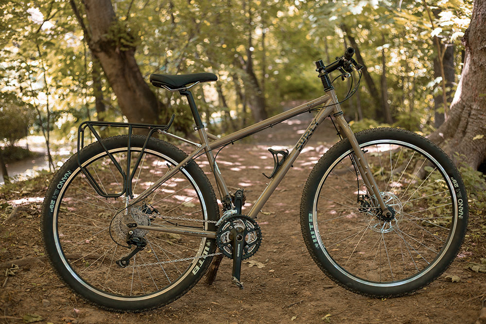 Mickey recently built up a Surly Orge and swapped some of the stock parts with his preferred custom components. The Surly Orge is one of those 29er’s that will do it all from commuting, bikepacking, expedition touring, and singletrack. When I took it for a ride I couldn’t help but notice how comfortable and well it handled. It’s siting on 2.1” tires, which in turn make up for it not having suspension. The fork has a very wide clearance and fitting up to a 2.5” tire shouldn’t be a problem. The bike is well made for adventure.