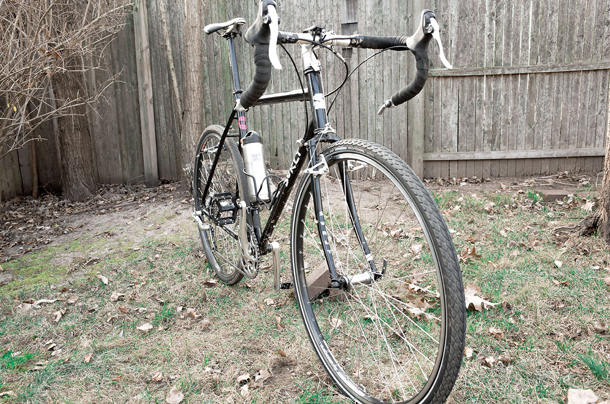 Thanks Chris! You can probably say it’s a lost art to prop your bike up against the curb with your pedal. With my bike fully loaded it was easily achievable to lean it against obscure but sturdy things like, walls, fence post, tables and tress. I also placed it on the grass on its non-derailleur side.
